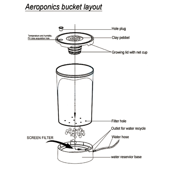 | component: | Mist and Cycle pump with time controller, 3 in 1 clone buckets, Water reservoir, Pipe assembly set, Shut off valve, Water level fitting, Rock wools, Water float valve |