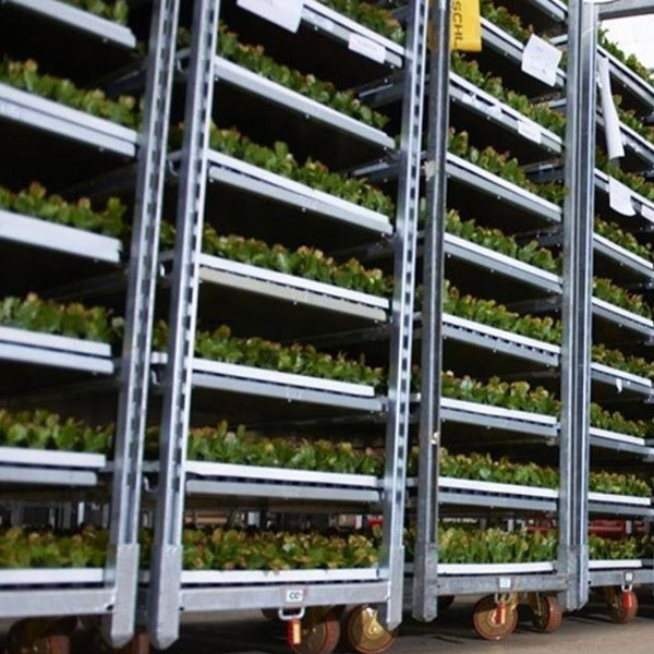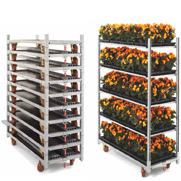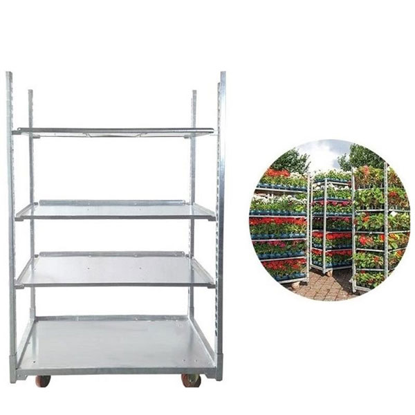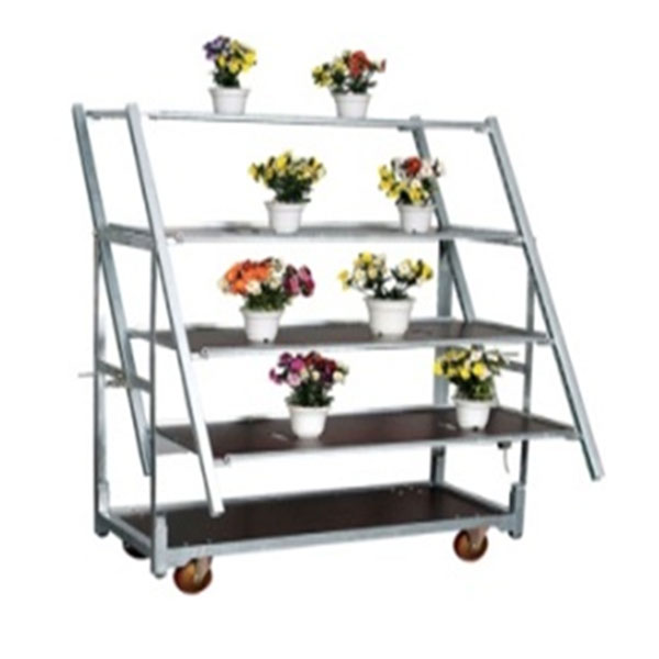 Greenhouse trolley cart is a special designed for transportation, display and storage of greenhouse flowers, mainly used in flower logistics turnover and planting management.