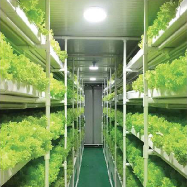 The hydroponic container system can be used by simply connecting the water pipe. The temperature and humidity inside the container can be adjusted, and it is not affected by climate or soil environment requirements. Hydroponic cultivation is more water efficient and can be planted all year round. It is stable in terms of yield and supply, and the container is easy to place, saving transportation.