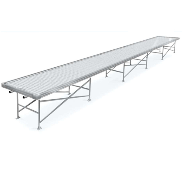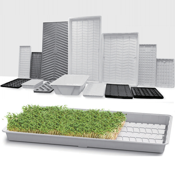 The hydroponic flood trays are used on the ebb and flow table, filled with water or nutrient solution, and it is retained for a certain time, so that the plants rely on capillary action to absorb water through the drainage hole at the bottom of the pot. The irrigation water is then discharged from the flood table, collected and reused, or directly into sewer pipes.