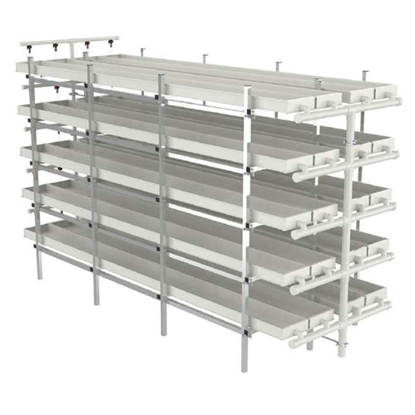 Microgreen is the shoot of vegetable which is picked just after the first few true leaves have grown. The hydroponic microgreen growing System is designed to allow more sunlight to reach between each layer, there is even enough space to add artificial lighting above each layer, with 5 layers per rack and 4 channels per layer, the 20 channels will allow you to harvest a full channel 3-4 times per week. The technology is similar as the hydroponic fodder system.