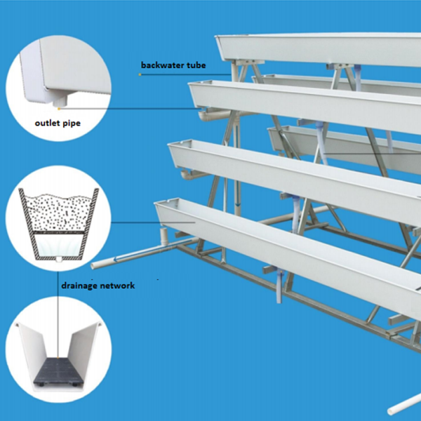 Vertical Planting Trough System is usually designed in a U-shape or A-shape, it can increase the number of planting layers in a limited space, thereby improving the planting density per unit area.